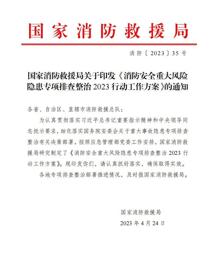《消防安全重大風(fēng)險(xiǎn)隱患專項(xiàng)排查整治2023行動(dòng)工作方案》