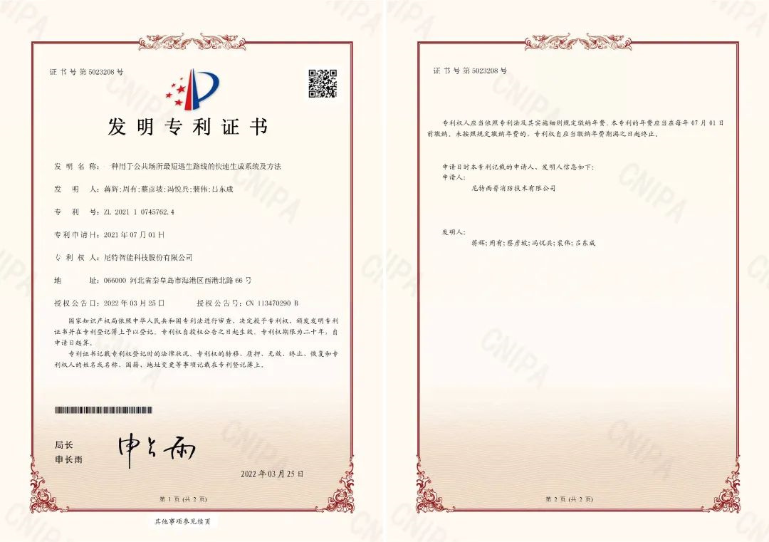 專利認證,賦能疏散安全