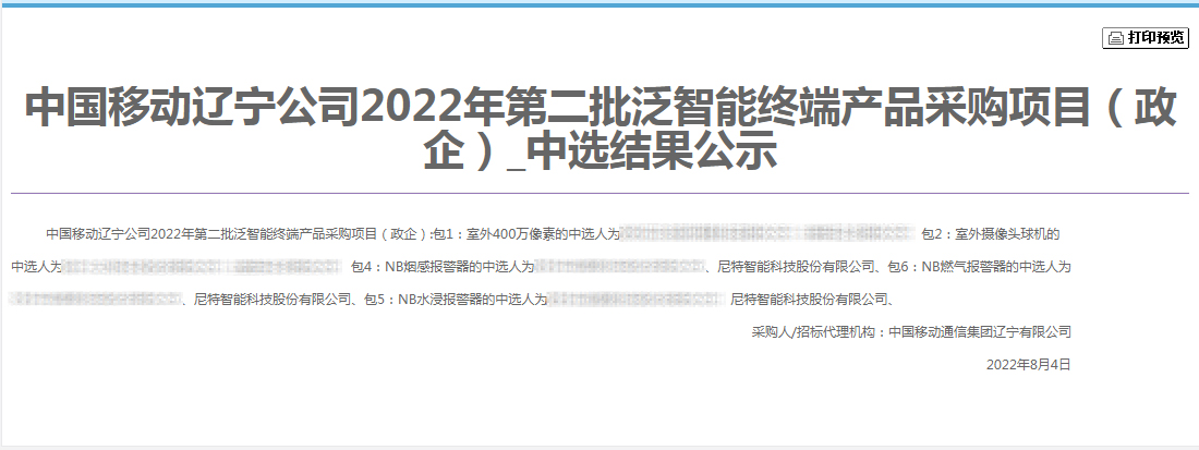 在此之前,尼特就以創(chuàng)新、可靠的智能化產(chǎn)品和全面、周到的場景化服務(wù)被中國移動集團授予了“高級會員單位”榮譽證書,此次中標中國移動遼寧公司項目,再次加深了尼特與中國移動集團戰(zhàn)略合作關(guān)系,尼特也將利用自身技術(shù)和產(chǎn)品服務(wù)優(yōu)勢,持續(xù)為中國移動集團智能化消防安全建設(shè)保駕護航。