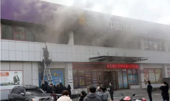 2020年3月5日,山東省淄博市興業(yè)銀行樓頂突然發(fā)生火災(zāi),未造成人員傷亡,起火地點(diǎn)在五樓天臺(tái),變壓器突然起火致火災(zāi)。