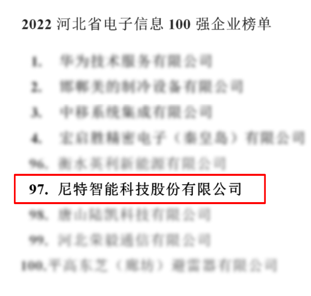電子信息競爭力百強企業(yè)榜單是以2021年報主營業(yè)務(wù)收入作為主要依據(jù),依托主營收入、市場占有率、研發(fā)創(chuàng)新能力、品牌影響力、企業(yè)社會責任等指標考核企業(yè)綜合競爭力。尼特憑借卓越的綜合實力和創(chuàng)新能力榮登榜單,是政府及社會各界對尼特品牌的高度肯定,同時也是尼特堅持科技研發(fā)投入、堅持高質(zhì)量發(fā)展的體現(xiàn),為尼特的長遠發(fā)展增添了動力。