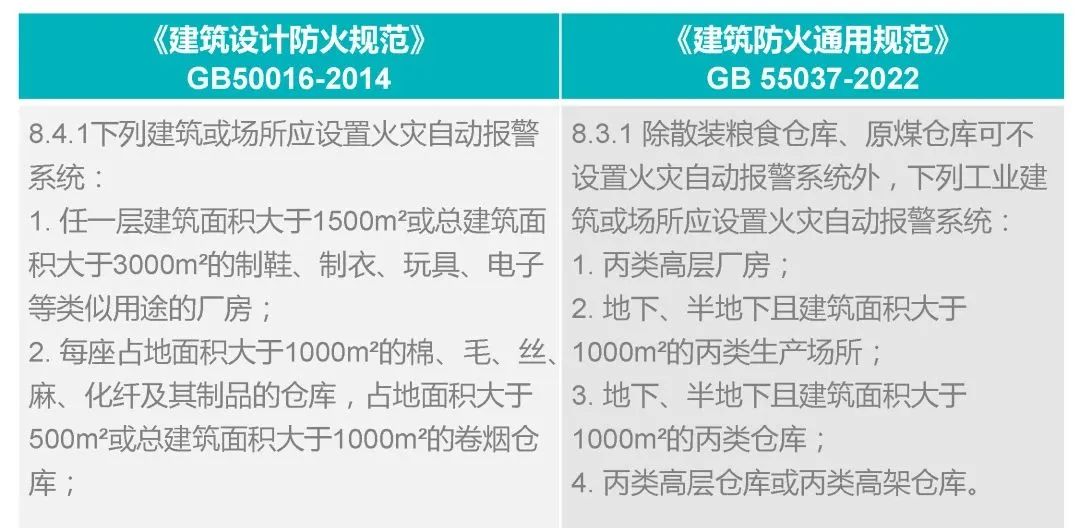 為貫徹和落實(shí)2023年6月1日起實(shí)施GB55037-2022《建筑防火通用規(guī)范》的基本要求和引領(lǐng)作用,深度了解火災(zāi)自動(dòng)報(bào)警系統(tǒng)在建筑防火設(shè)計(jì)過程中的強(qiáng)制應(yīng)用范圍,本期,尼特君將GB55037-2022《建筑防火通用規(guī)范》中一些條文與GB 50016-2014《建筑設(shè)計(jì)防火規(guī)范》進(jìn)行對(duì)比梳理,一起了解下新規(guī)范中關(guān)于火災(zāi)自動(dòng)報(bào)警系統(tǒng)有哪些變化呢?