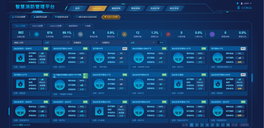 利用用戶信息傳輸裝置與城中村、老舊小區(qū)原有的火災(zāi)自動(dòng)報(bào)警主機(jī)進(jìn)行對(duì)接,實(shí)時(shí)采集各種火災(zāi)報(bào)警、建筑消防設(shè)施運(yùn)行狀態(tài),通過定制搭建的尼特云智慧消防管理平臺(tái)實(shí)現(xiàn)對(duì)消防安全狀況的全方位感知、全過程監(jiān)控,一張圖”掌握火災(zāi)風(fēng)險(xiǎn)情況,也為火災(zāi)調(diào)查提供嚴(yán)謹(jǐn)?shù)目茖W(xué)依據(jù)。