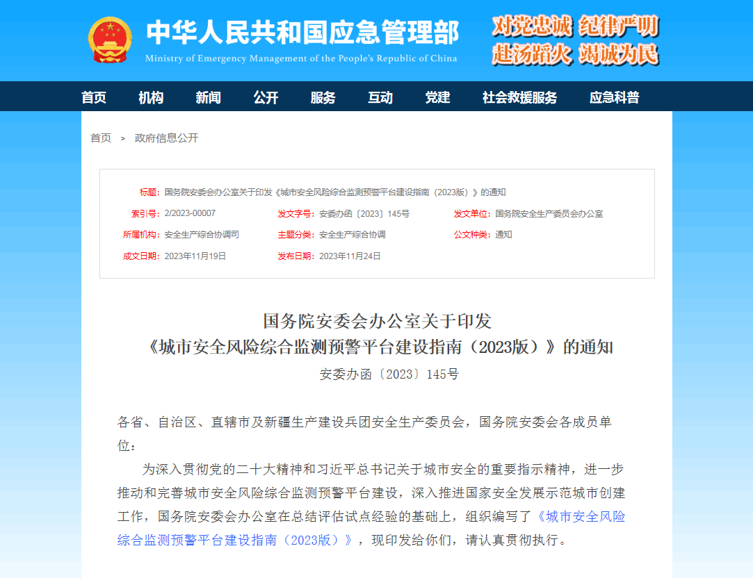 以全面建成“能監(jiān)測(cè)、會(huì)預(yù)警、快處置”的城市安全風(fēng)險(xiǎn)綜合監(jiān)測(cè)預(yù)警平臺(tái)為目標(biāo),新指南中提出,要對(duì)各類突出風(fēng)險(xiǎn)進(jìn)行重點(diǎn)感知監(jiān)測(cè),構(gòu)建統(tǒng)分結(jié)合、協(xié)調(diào)聯(lián)動(dòng)的城市安全風(fēng)險(xiǎn)監(jiān)測(cè)預(yù)警體系,促進(jìn)信息化、智能化與城市安全深度融合。