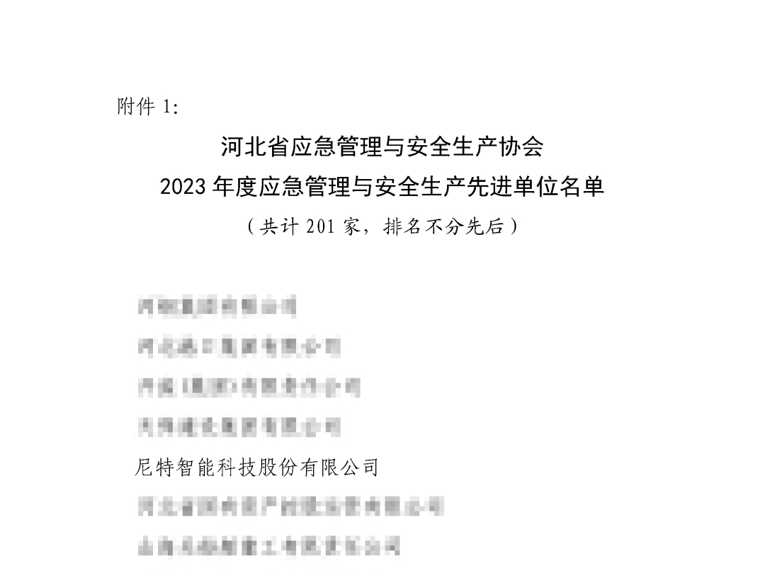 河北省應(yīng)急管理與安全生產(chǎn)協(xié)會開展此次評選致力于表彰認(rèn)真落實企業(yè)安全生產(chǎn)主體責(zé)任,重視應(yīng)急管理與安全生產(chǎn)管理工作的單位和個人,進(jìn)一步激發(fā)各單位安全管理人員的工作積極性和創(chuàng)造性,促進(jìn)河北省安全生產(chǎn)形勢持續(xù)穩(wěn)定好轉(zhuǎn)。本次獲得“2023年度秦皇島全市安全生產(chǎn)和應(yīng)急管理工作先進(jìn)單位”的榮譽,標(biāo)志著我公司的安全生產(chǎn)管理水平躍上了一個新的臺階,也意味著公司在安全生產(chǎn)管理工作邁出了重要的一步,是對尼特智能安全工作的肯定,更是一份鞭策!