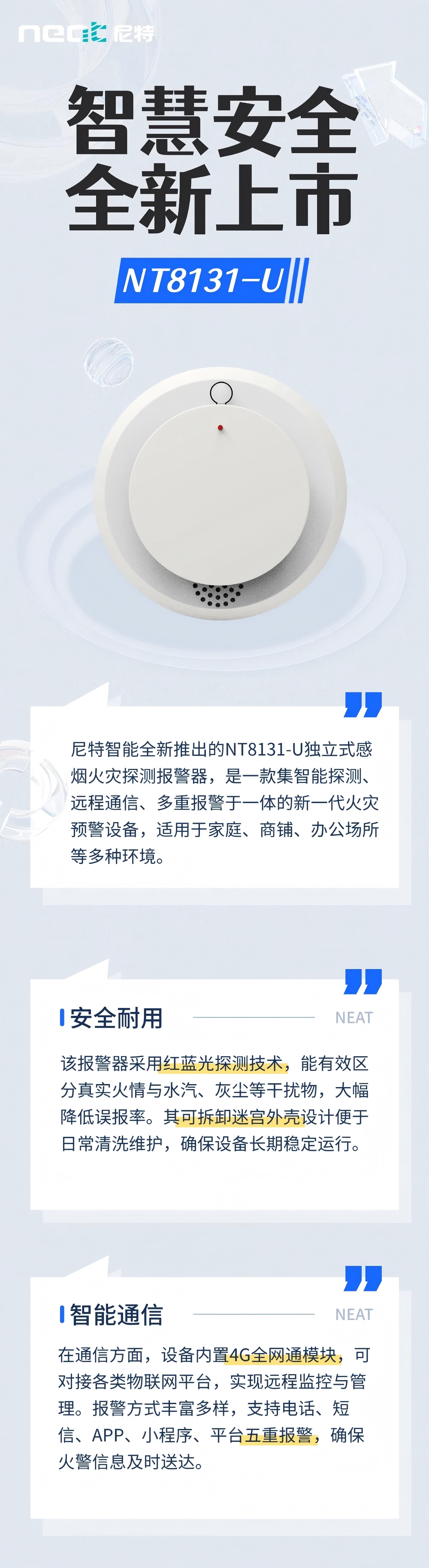 新品上市丨NT8131-U獨(dú)立感煙報(bào)警器,讓火災(zāi)預(yù)警更精準(zhǔn)