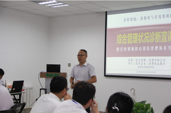 經(jīng)過項目組成員的悉心籌備,2016年7月14日下午,尼特公司“綜合管理狀況診斷宣講會”暨“尼特核心團隊管理體系交流會”在公司培訓(xùn)中心召開。尼特智能科技有限公司董事長趙建斗、總經(jīng)理張新忠、項目組專業(yè)導(dǎo)師、公司骨干員工近60人出席了本次宣講大會。