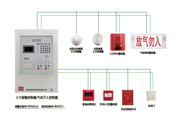 系統(tǒng)以NT8031火災(zāi)報(bào)警控制器/氣體滅火控制器為核心,可以獨(dú)立配接感煙探測(cè)器和感溫探測(cè)器,共兩個(gè)分區(qū),每個(gè)分區(qū)可接100個(gè)總線設(shè)備??蓪?shí)現(xiàn)與火災(zāi)報(bào)警控制器通過CAN總線通訊??煽刂破叻椤馊苣z、二氧化碳等氣體滅火設(shè)備。