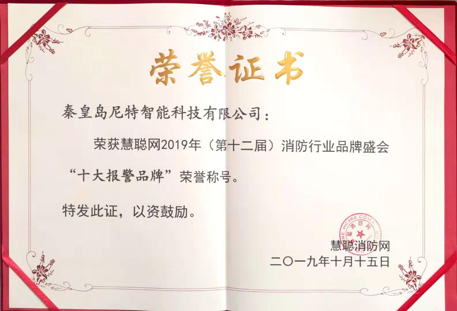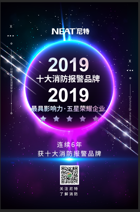 2019年10月15日,“2019(第十二屆)中國消防行業(yè)品牌盛會(huì)”上,尼特再度被評(píng)選為【十大消防報(bào)警品牌】,并同時(shí)上榜【最具影響力·五星榮耀企業(yè)】,自2014年首登榜單以來,尼特已連續(xù)六年榮獲“十大品牌”殊榮。