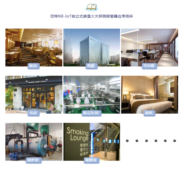 注:感溫探測(cè)報(bào)警器適用于無(wú)法安裝感煙探測(cè)器場(chǎng)所