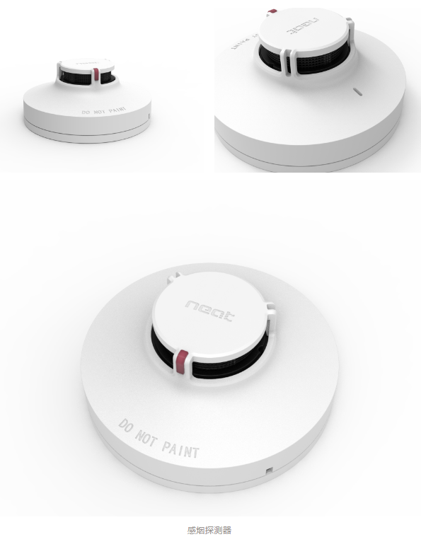 尼特報(bào)疏一體化系統(tǒng)的感煙探測器的設(shè)計(jì)靈感來自于富士山,設(shè)計(jì)中突出了“少,即是多(less is more)”這個(gè)概念,將極簡的線條與幾何的平面相結(jié)合,頂部僅使用3根連接筋,最小程度的減少了對迷宮部分的遮擋,使其最大限度地感應(yīng)環(huán)境中的煙霧濃度情況。感煙探測器有排水孔設(shè)計(jì),在潮濕環(huán)境及發(fā)生滲水狀況時(shí),能夠及時(shí)的排出,能增強(qiáng)產(chǎn)品的耐用度。