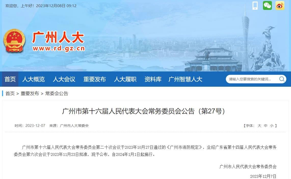 廣東省第十四屆人民代表大會常務(wù)委員會第六次會議審查了廣州市人民代表大會常務(wù)委員會報(bào)請批準(zhǔn)的《廣州市消防規(guī)定》,該規(guī)定與...