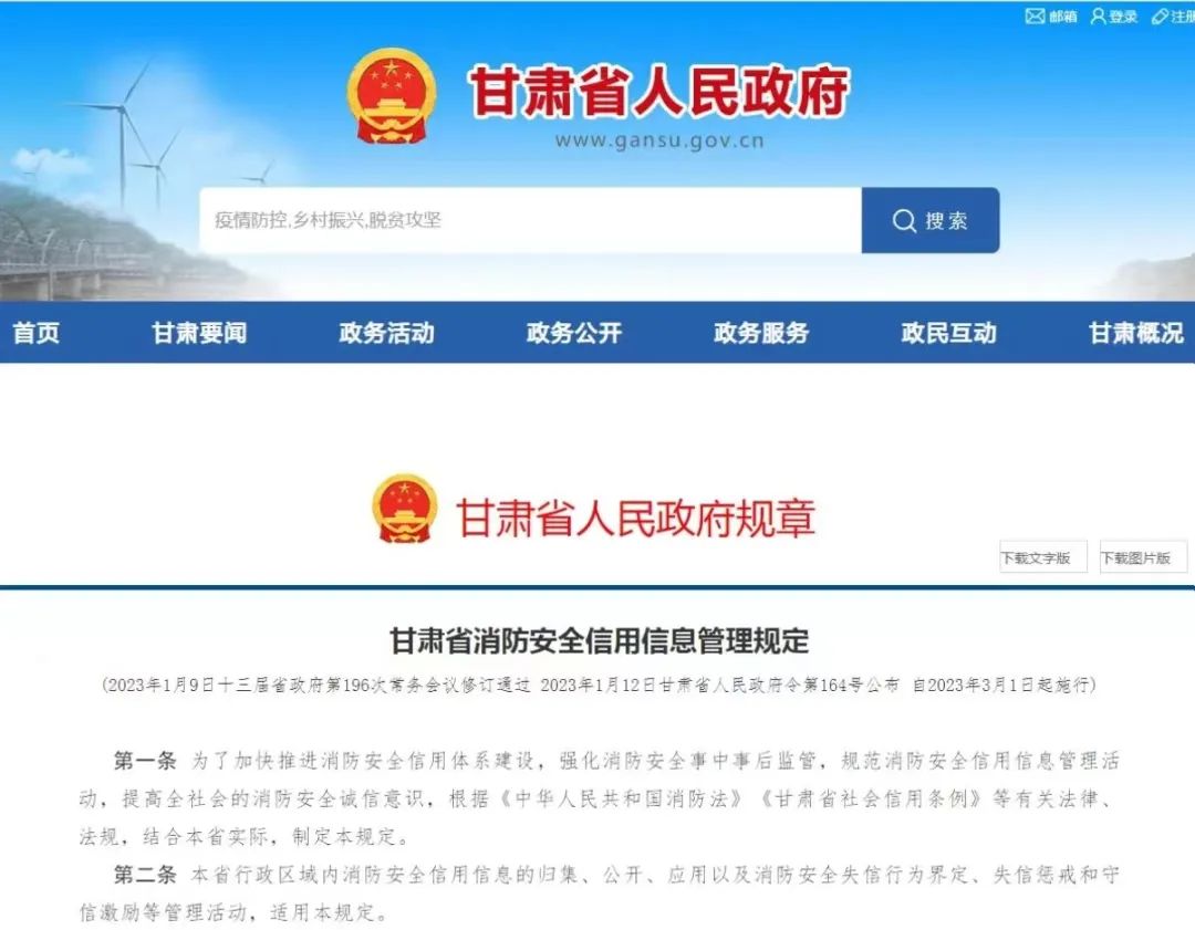 近日,甘肅省政府第196次常務(wù)會議審議通過了《甘肅省消防安全信用信息管理規(guī)定》《甘肅省火災(zāi)事故調(diào)查處理規(guī)定》,兩部規(guī)章分別以甘肅省人民政府令第164、165號公布,于3月1日起正式...