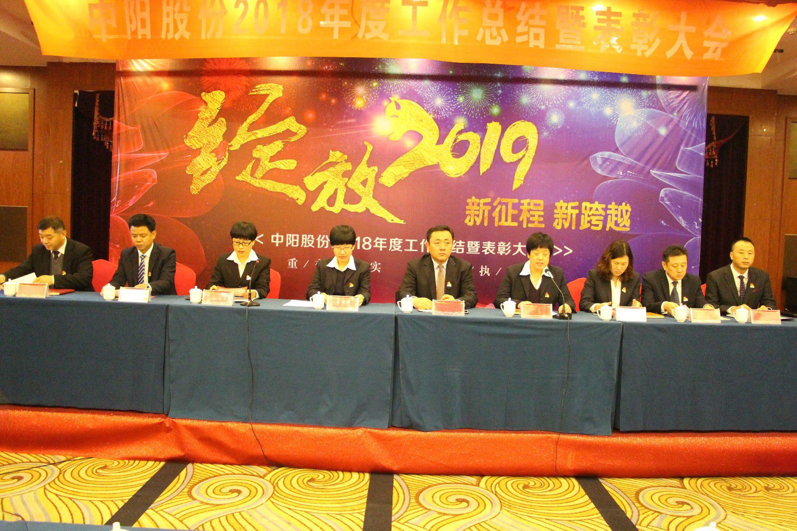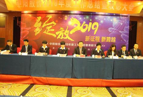 2019年1月8日上午,中陽股份2018年工作總結(jié)暨表彰大會(huì)在藍(lán)海酒店順利召開??偛?、北京辦事處全體成員、生產(chǎn)部班長(zhǎng)級(jí)以上人員及員工代表參加了此次年度大會(huì)。