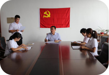 2017年8月4日下午,在總部活動(dòng)室開展每月一次的黨支部委員會(huì)議。參加人員有中共利津縣明集鄉(xiāng)中陽碳素黨支部書記馬汝杰、黨支部委員楊帆,吸納了中陽集團(tuán)積極先進(jìn)的員工列席此次會(huì)議。