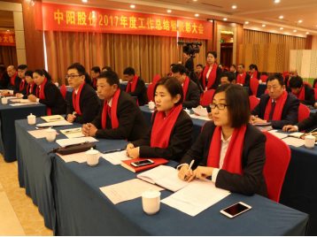 會議主席臺領(lǐng)導(dǎo)自左向右依次是:董事長助理王建國、生產(chǎn)副總兼行政副總沙興惠、副總經(jīng)理兼財務(wù)總監(jiān)趙迪、駐企聯(lián)絡(luò)員裴澤翠、董事長馬汝杰、監(jiān)事會主席綦建秀、副總經(jīng)理兼營銷總監(jiān)薄紅影、副總經(jīng)理兼總工張永利、董事長助理鄒凝芳。