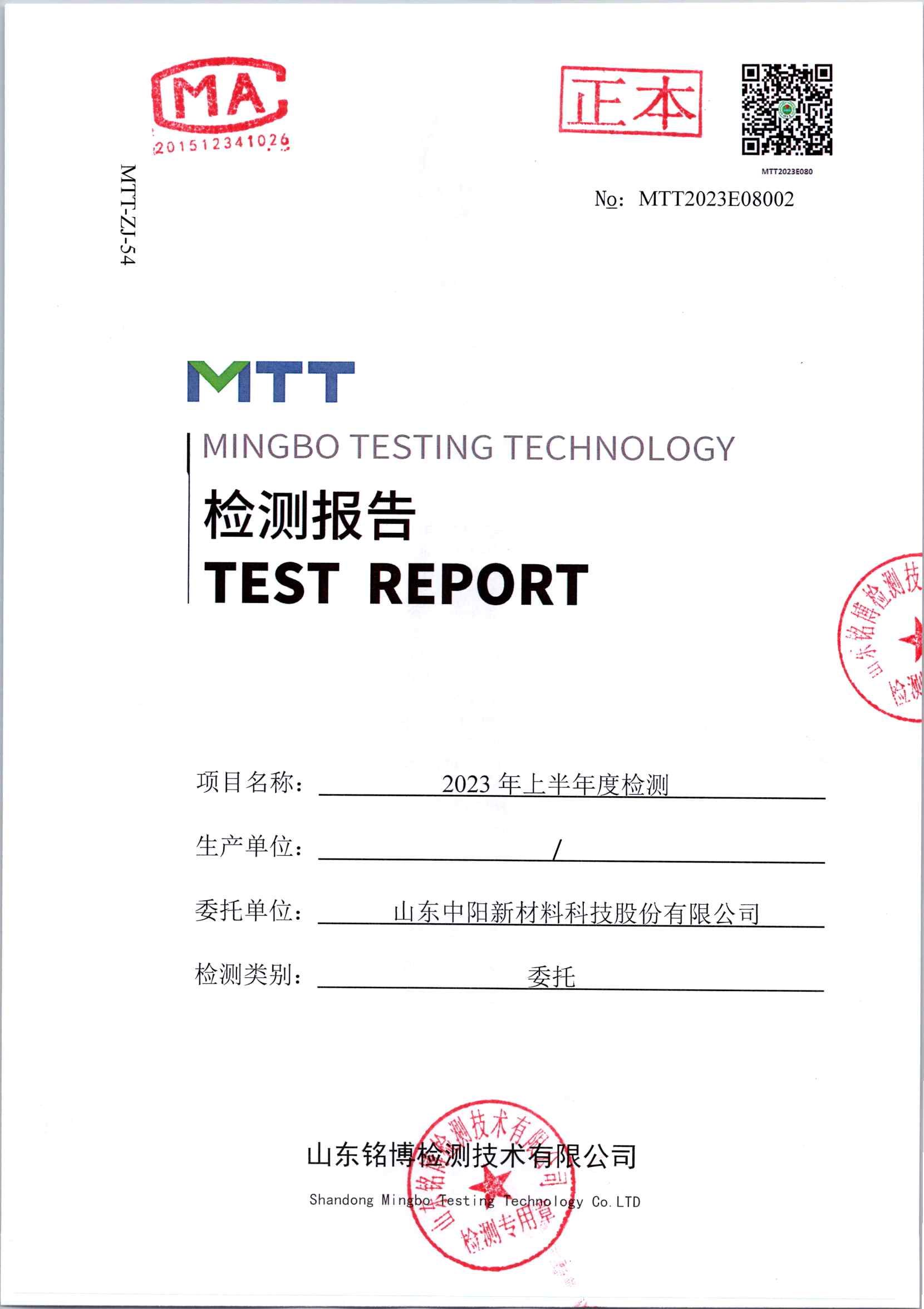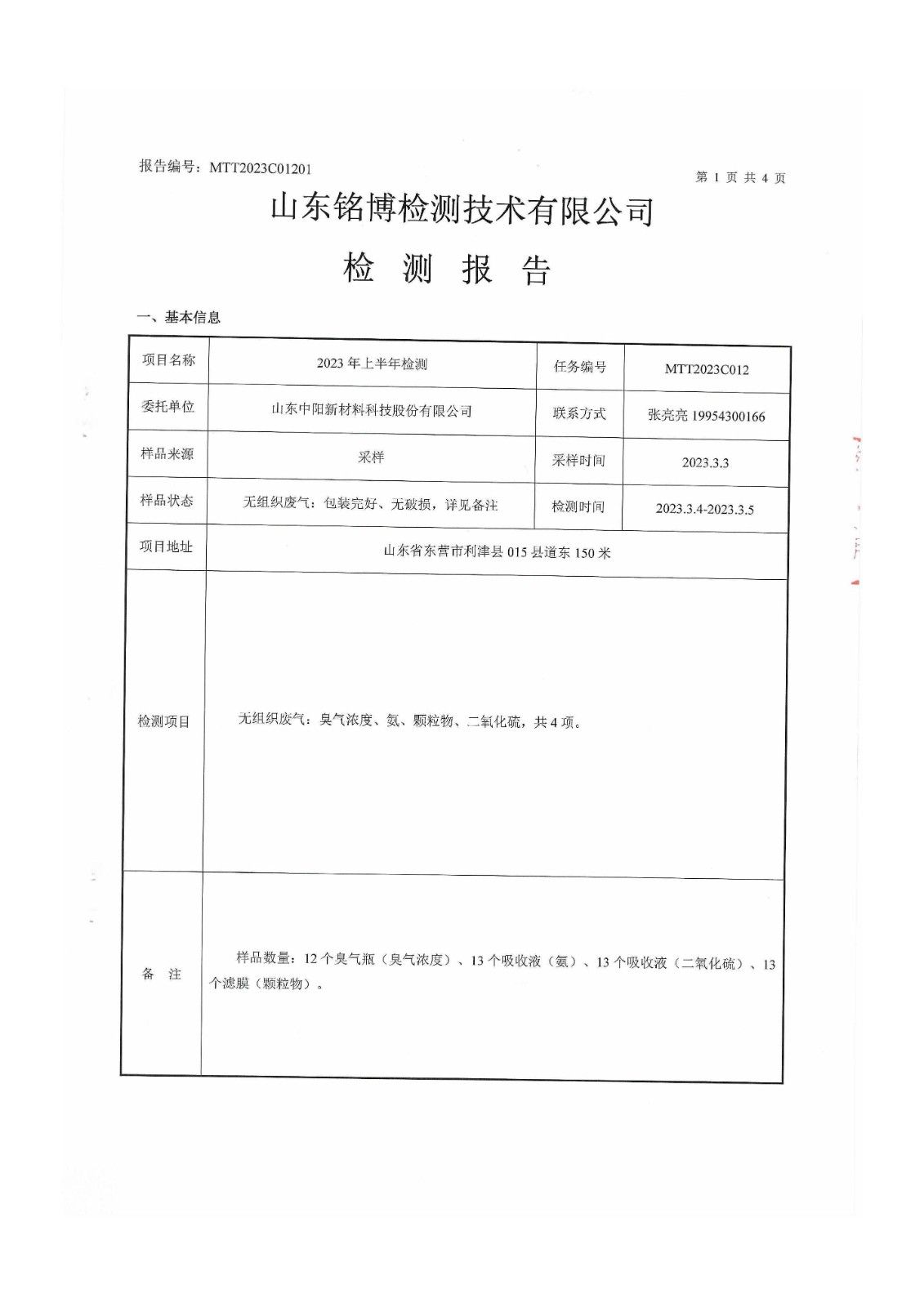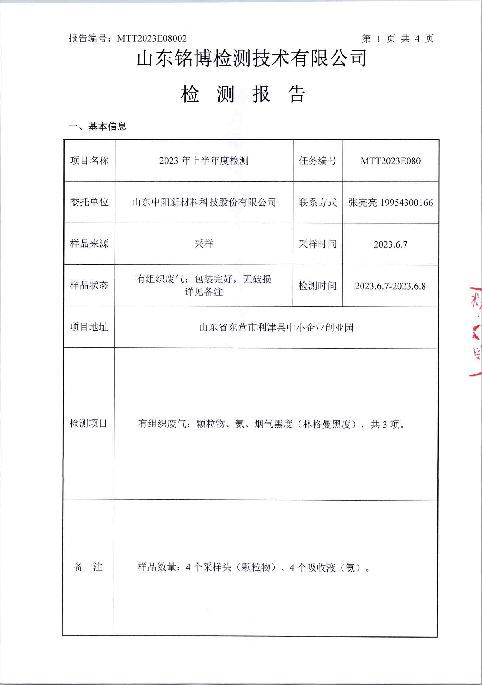 山東中陽新材料科技股份有限公司半年度廠界檢測