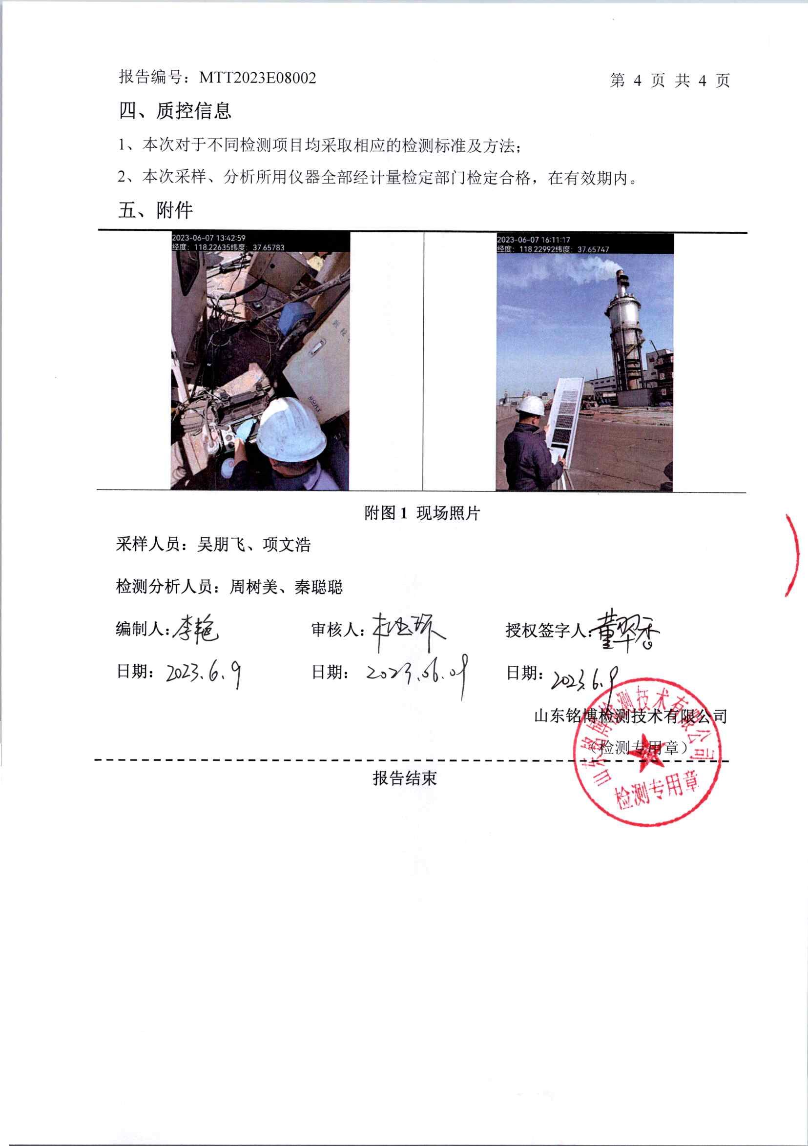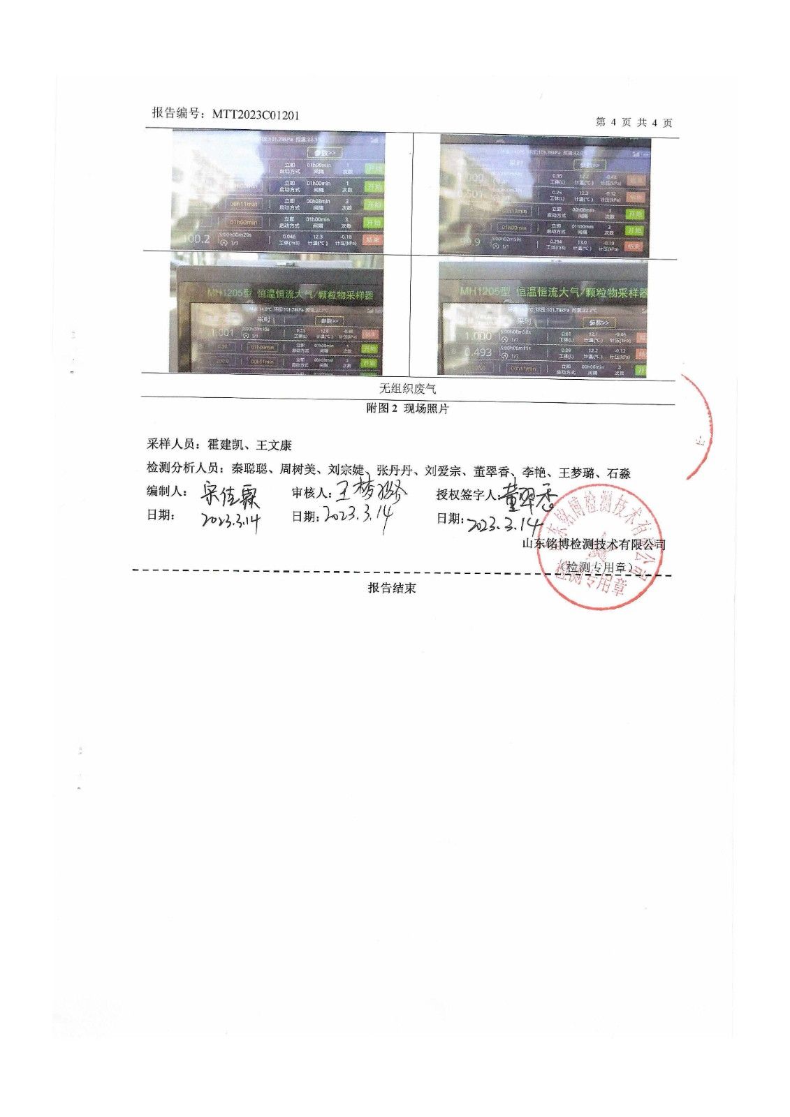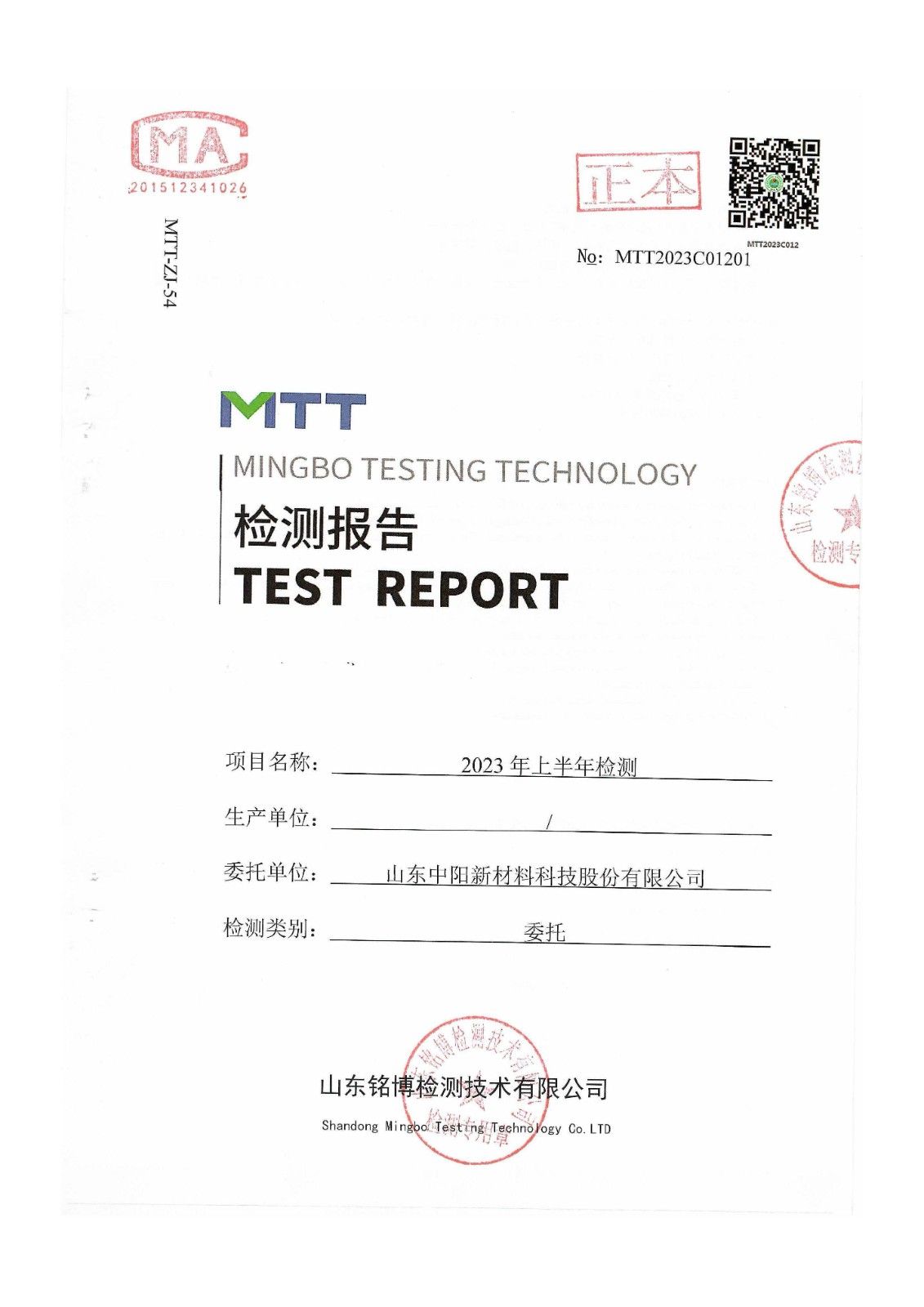 山東中陽新材料科技股份有限公司半年度廠界檢測